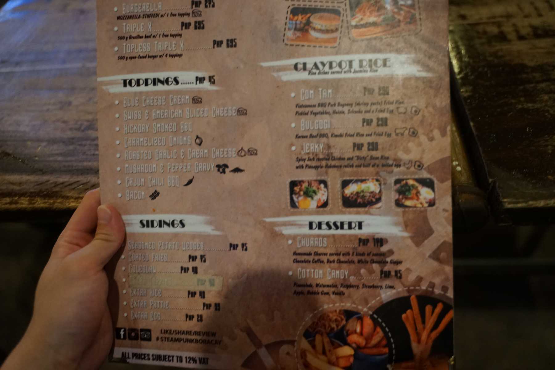 가격은 대체로 버거 하나에 300페소 정도, 우리 돈으로 7000원 정도라고 보시면 됩니다. 보라카이 물가 치고는 꽤 비싼 가격이고... 우리나라랑 비교해서도 확 저렴하다고 느껴지진 않습니다.