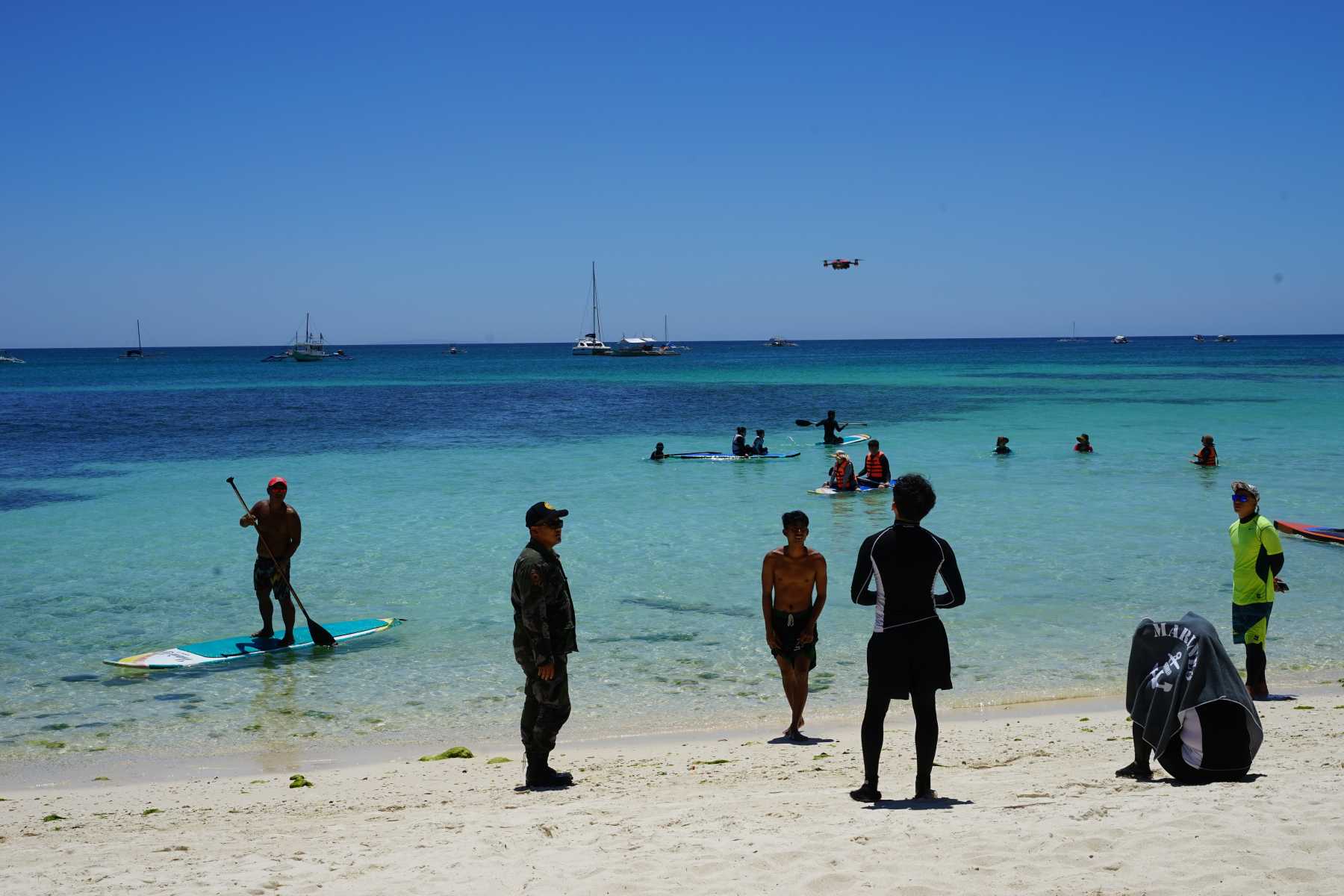 드론을 날리고 계시네요. 원래 보라카이 해변에서 드론 날리면 안 됩니다. 얼마 안 돼서 보안관 분이 오셔서 하면 안 된다고 하더라구요.