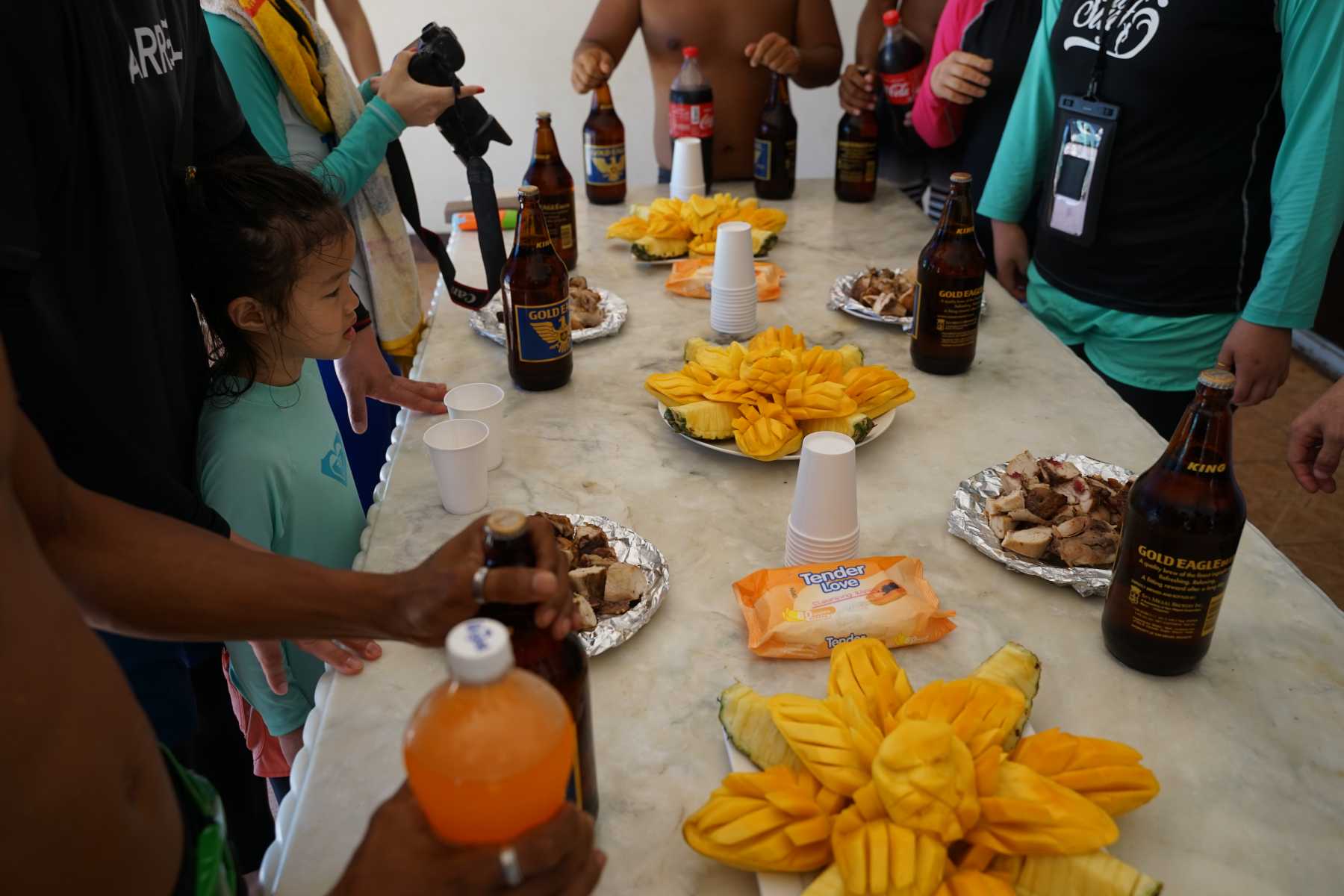 디니위드 비치에 도착하면 이렇게 만찬을 준비해주십니다. 여기서 맥주도 한 잔 하고, 과일도 먹으면서 놀 수 있어요!