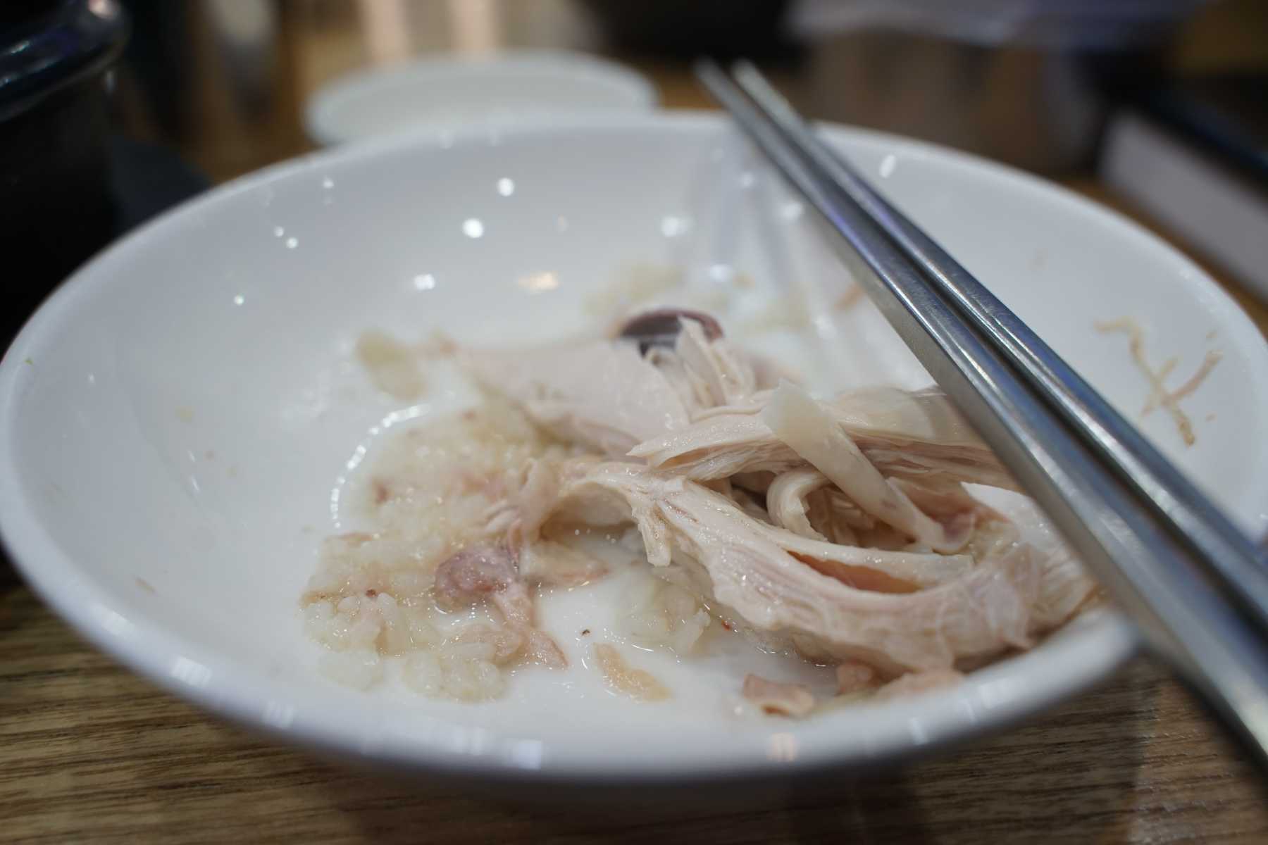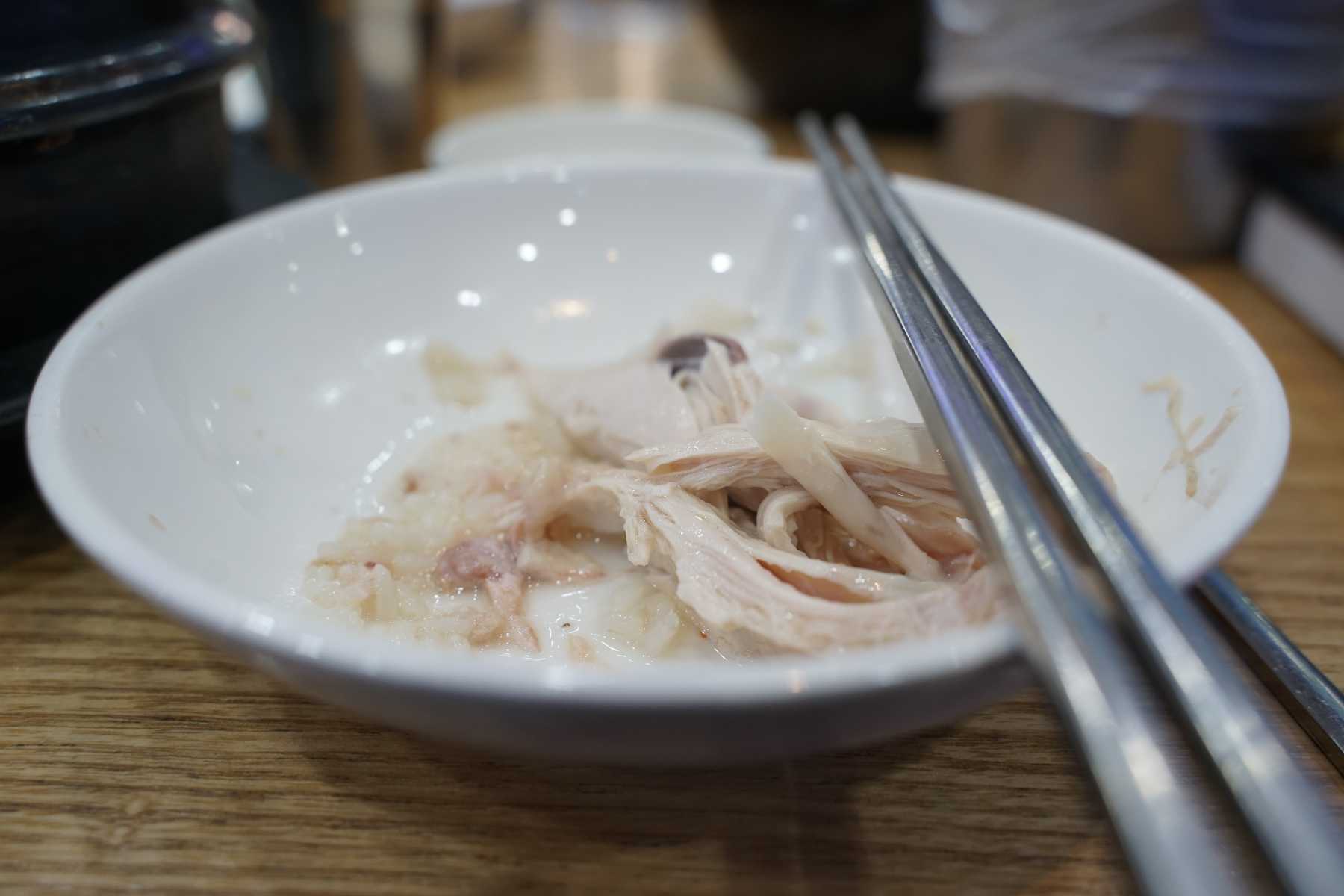 닭을 정말 얼마나 고았는지 젓가락을 들면 살과 뼈가 슥슥 분리가 될 정도입니다.