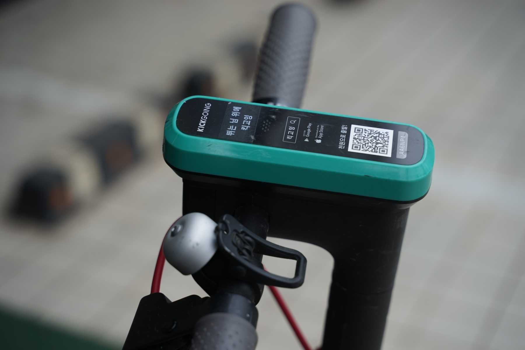 저런 식으로 킥보드 손잡이 쪽에 큐알코드가 붙어 있는데, 저 큐알코드를 스마트폰 앱으로 찍으면 저 킥보드를 사용할 수 있게 됩니다.