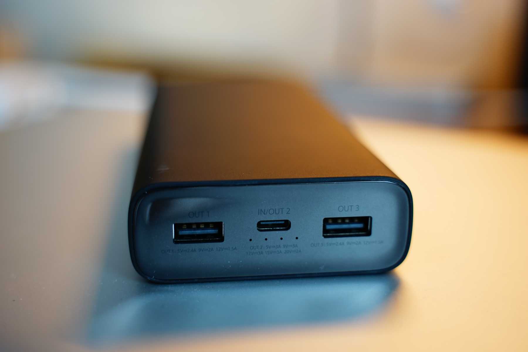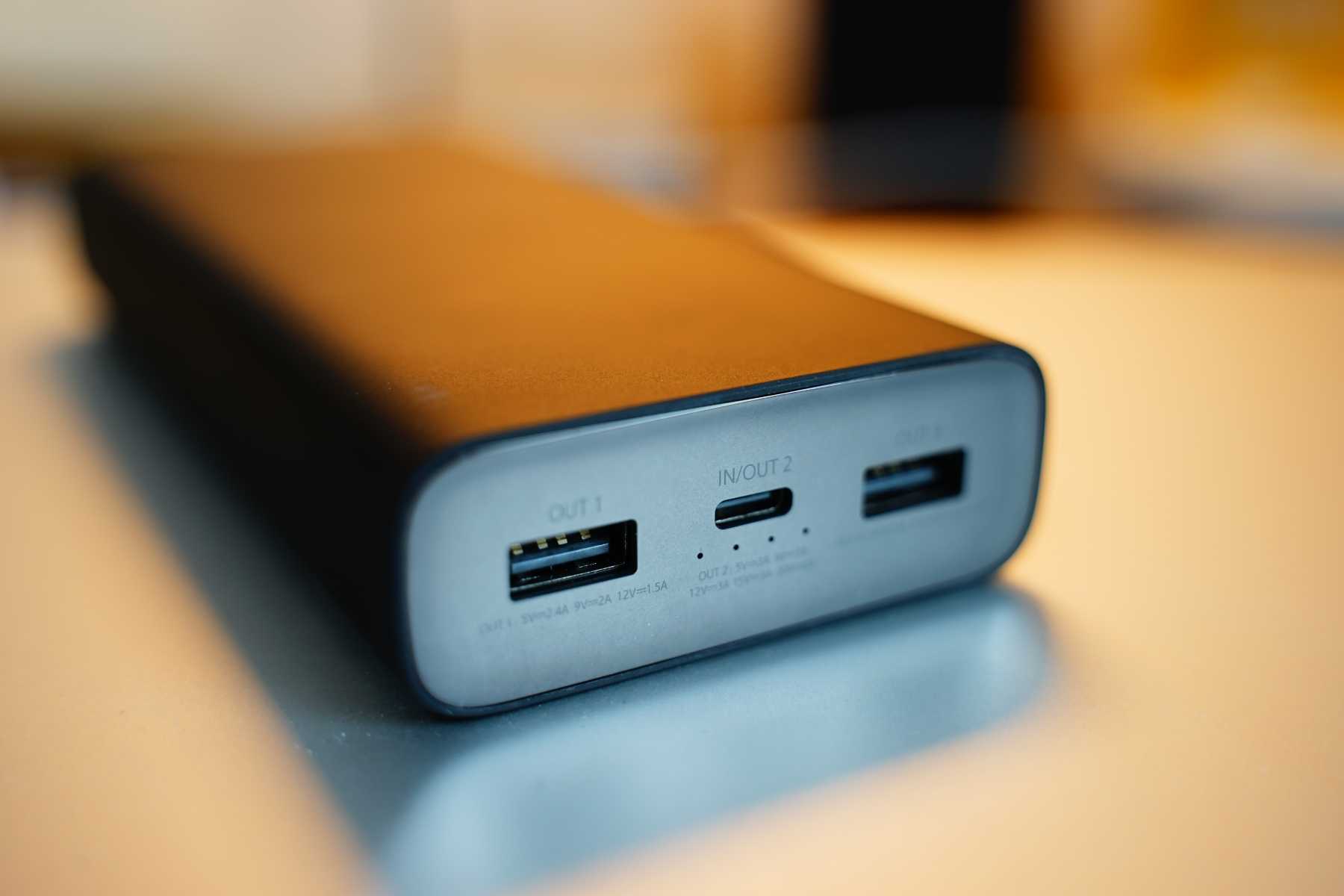 충전 포트는 USB 포트 2개와 USB-C 포트 한 개로 이루어져 있습니다.