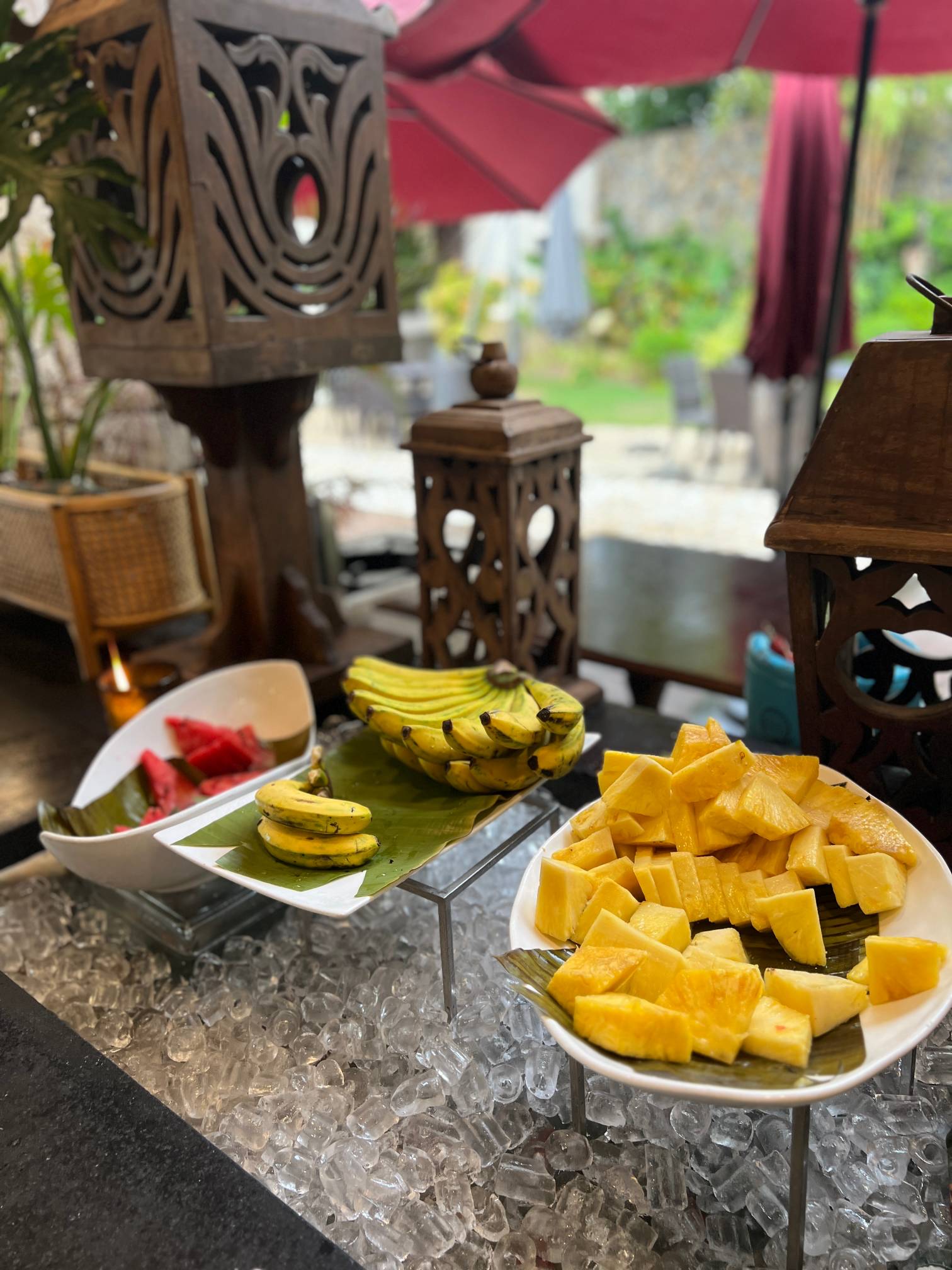 #조식 : 조식은 ‘La Marina’ 식당에서 제공이 되고 시간은 아침 7시부터 11시까지이다. 여기 식당은 실내가 아니라 사방이 뚫린 곳이라서 호텔 조식 먹는 거랑은 다른 색다른 느낌이 든다. 위에서는 씰링팬 돌아가고, 밖에 추적 추적 비 내리는 소리도 들리고 진짜 동남아 휴양지 느낌이 조금 더 든달까…